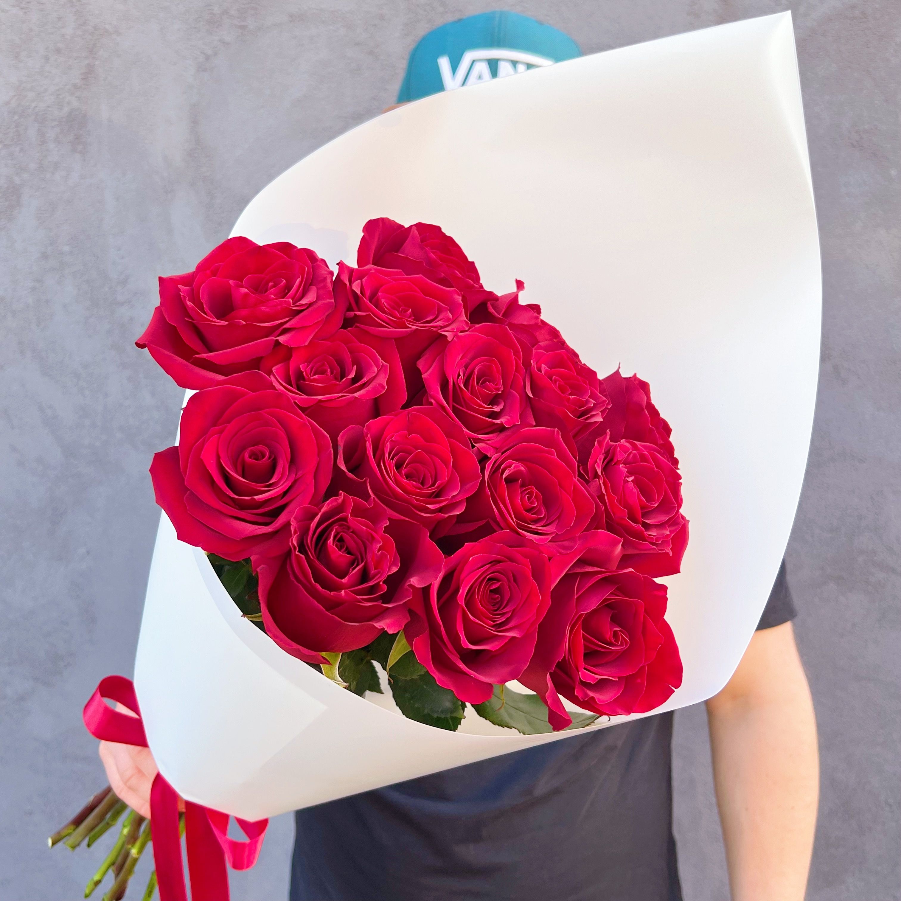 Букет красных роз Эквадор премиум 15 шт