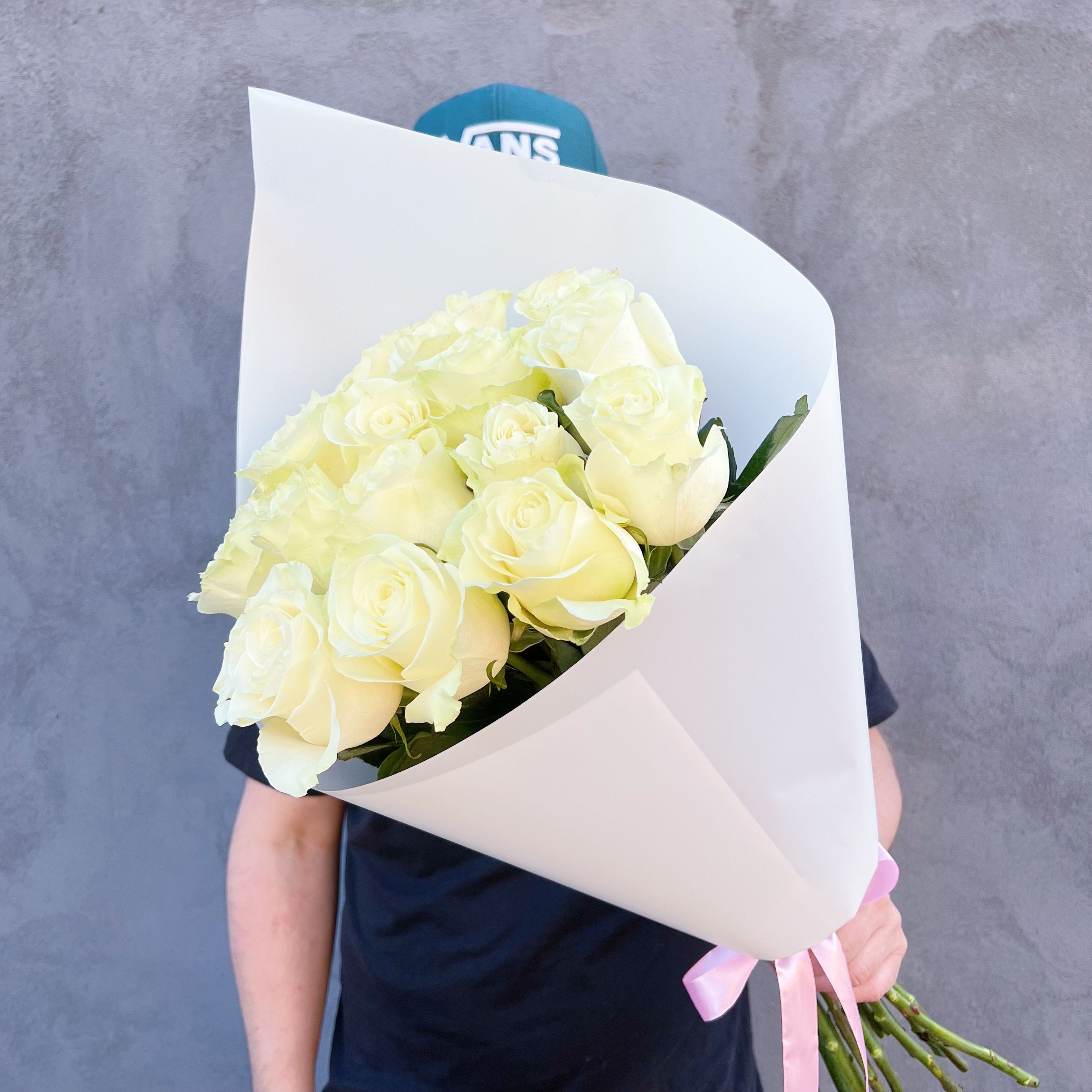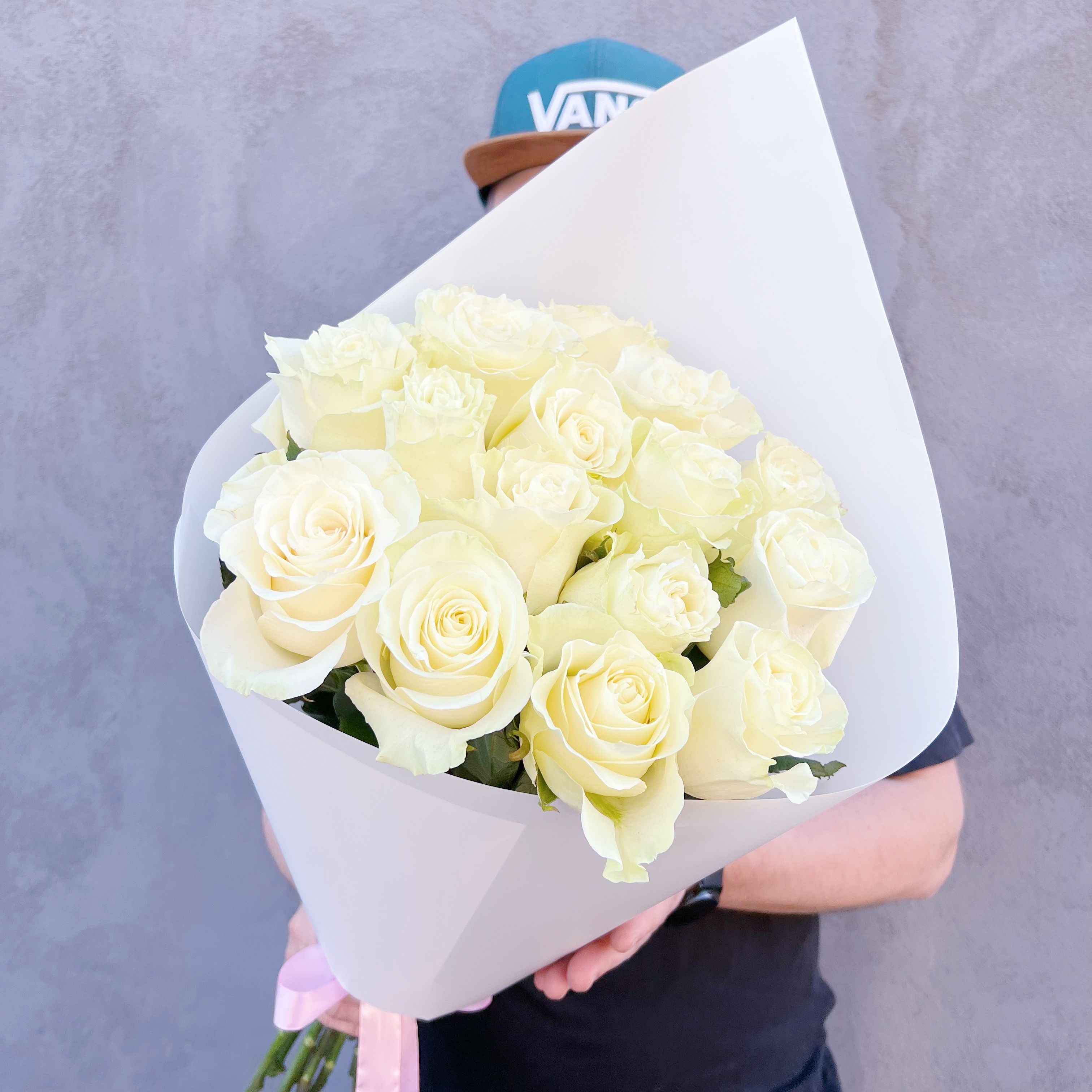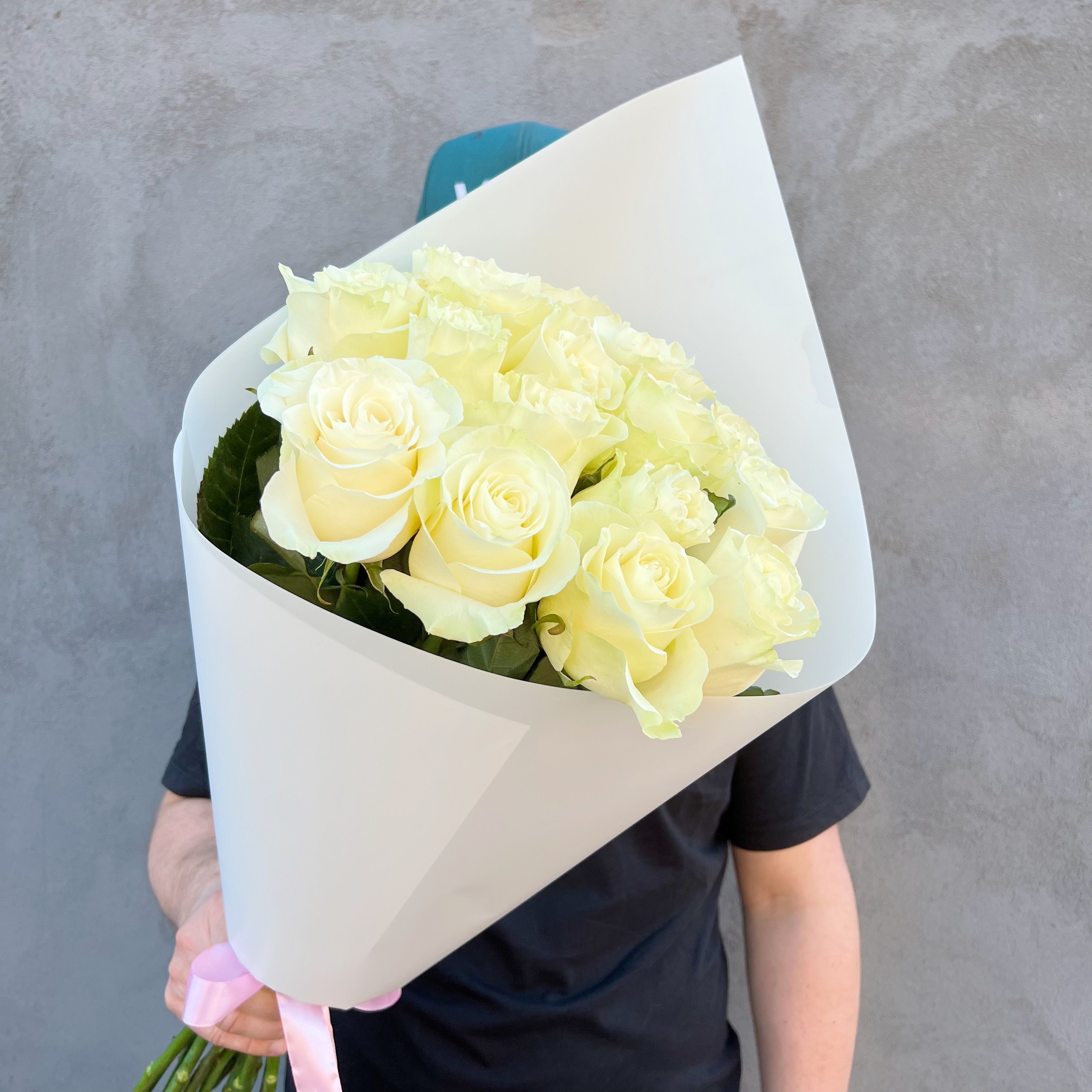 Букет белых роз Эквадор премиум 15 шт