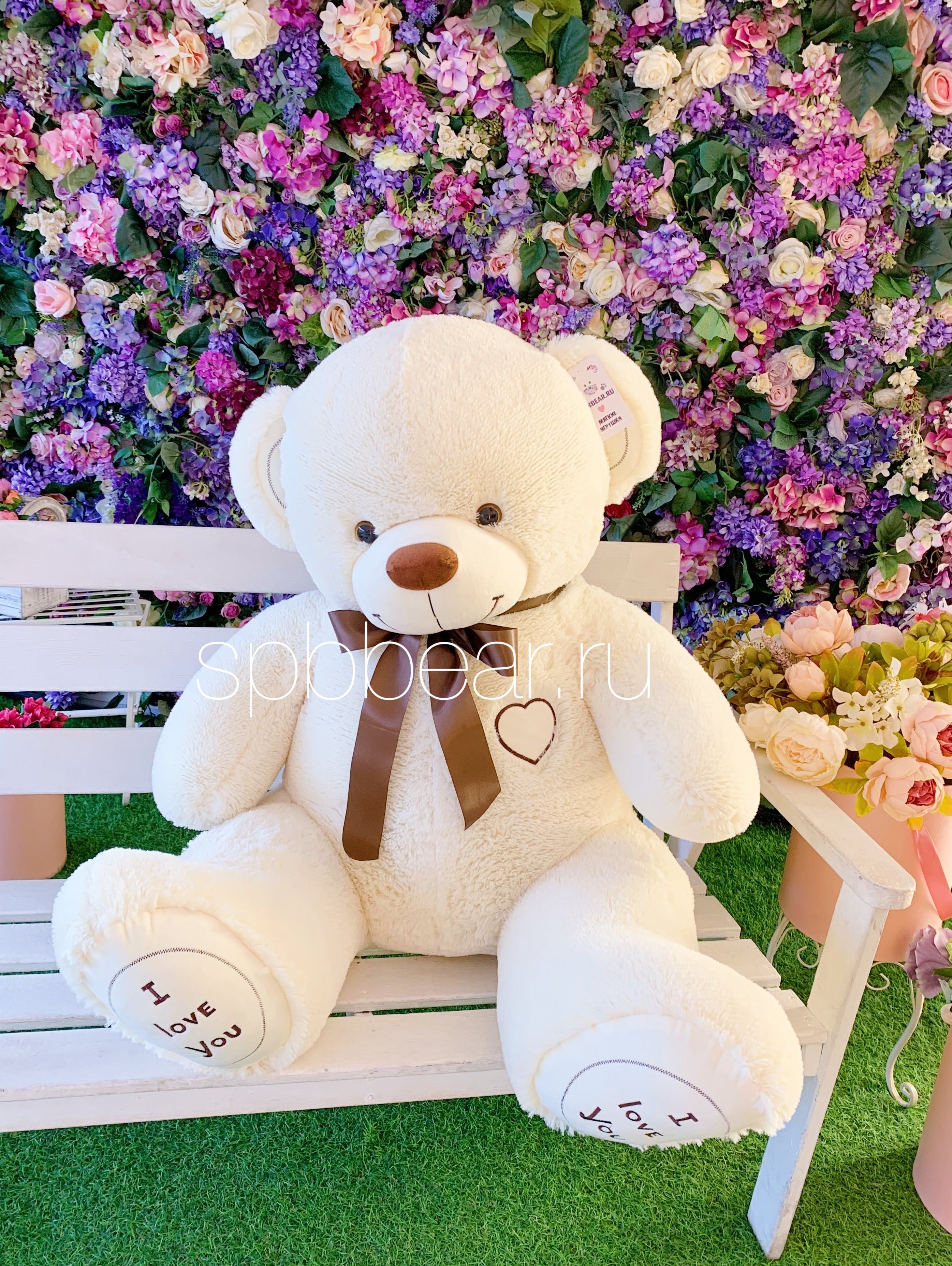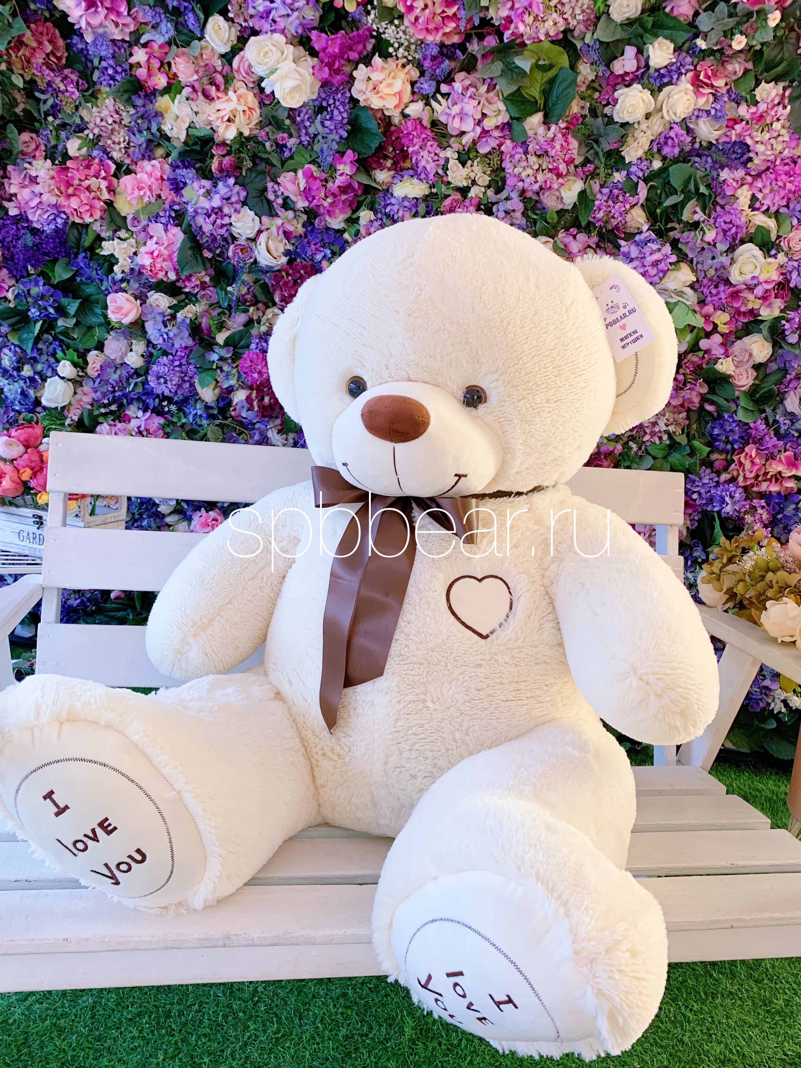 Милого плюшевого мишку можно купить по любому поводу, это универсальный вариант поздравления. Если вам хочется удивить, обрадовать любимую, то стоит выбрать этого большого бежевого красавца. Милый образ мягкого симпатяги удачно дополнен изящным шелковым бантом, вышитым сердечком на груди, надписями на лапках. Медведь большой, но не слишком тяжелый, 150-сантиметровая игрушка весит 4 килограмма. Его очень приятно обнимать, гладить. Он готов поселится в доме, сделав его уютнее. Плюшевый друг будет ежедневно напоминать близким о ваших чувствах. Если решение о покупке уже принято, то контакты магазина помогут оформить заказ. Не откладывайте возможность сделать близких счастливее, подарите очаровательного бежевого Михеля с бантом.
