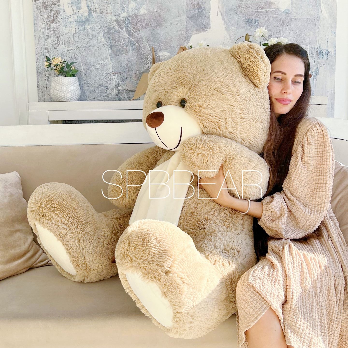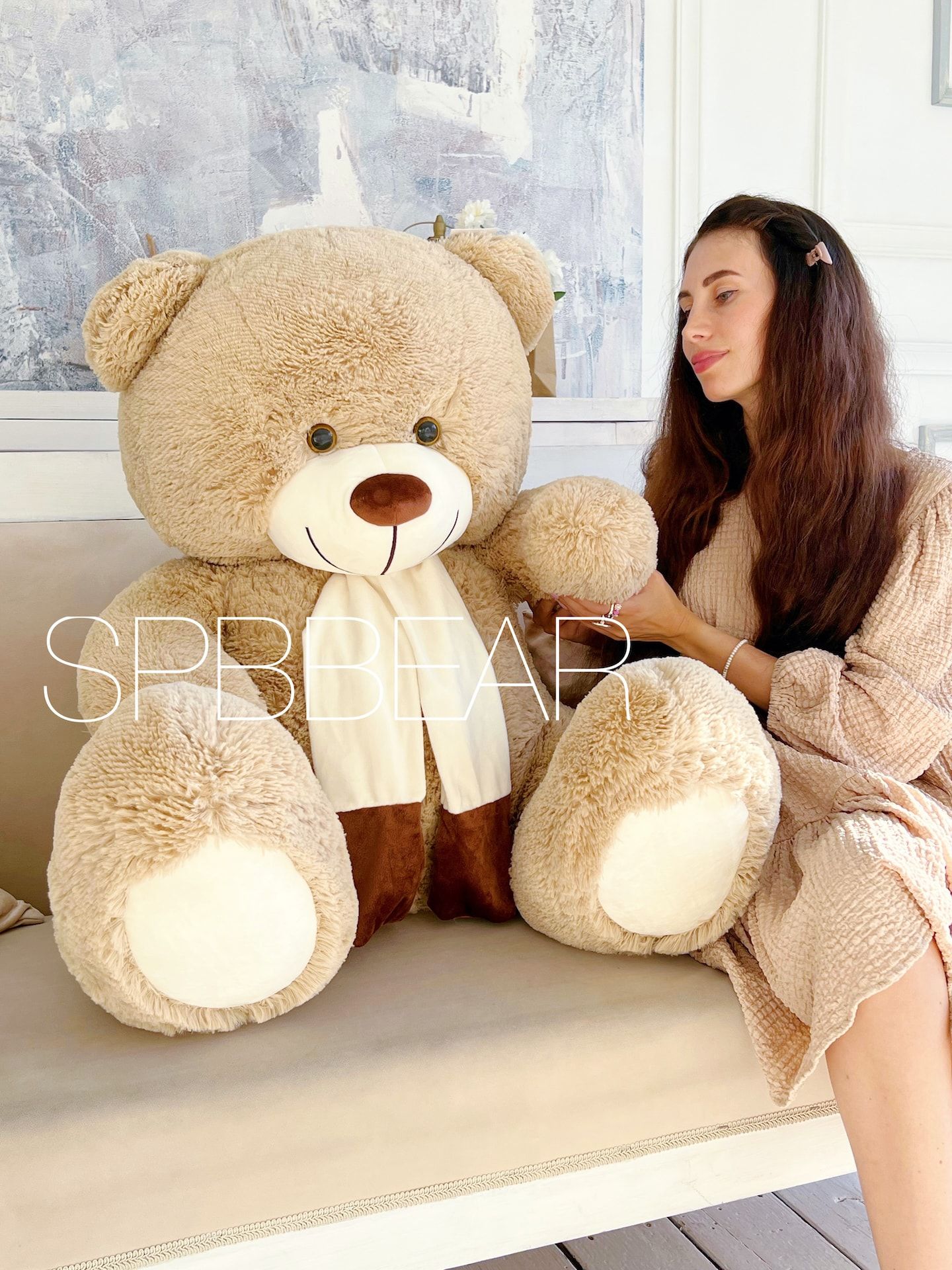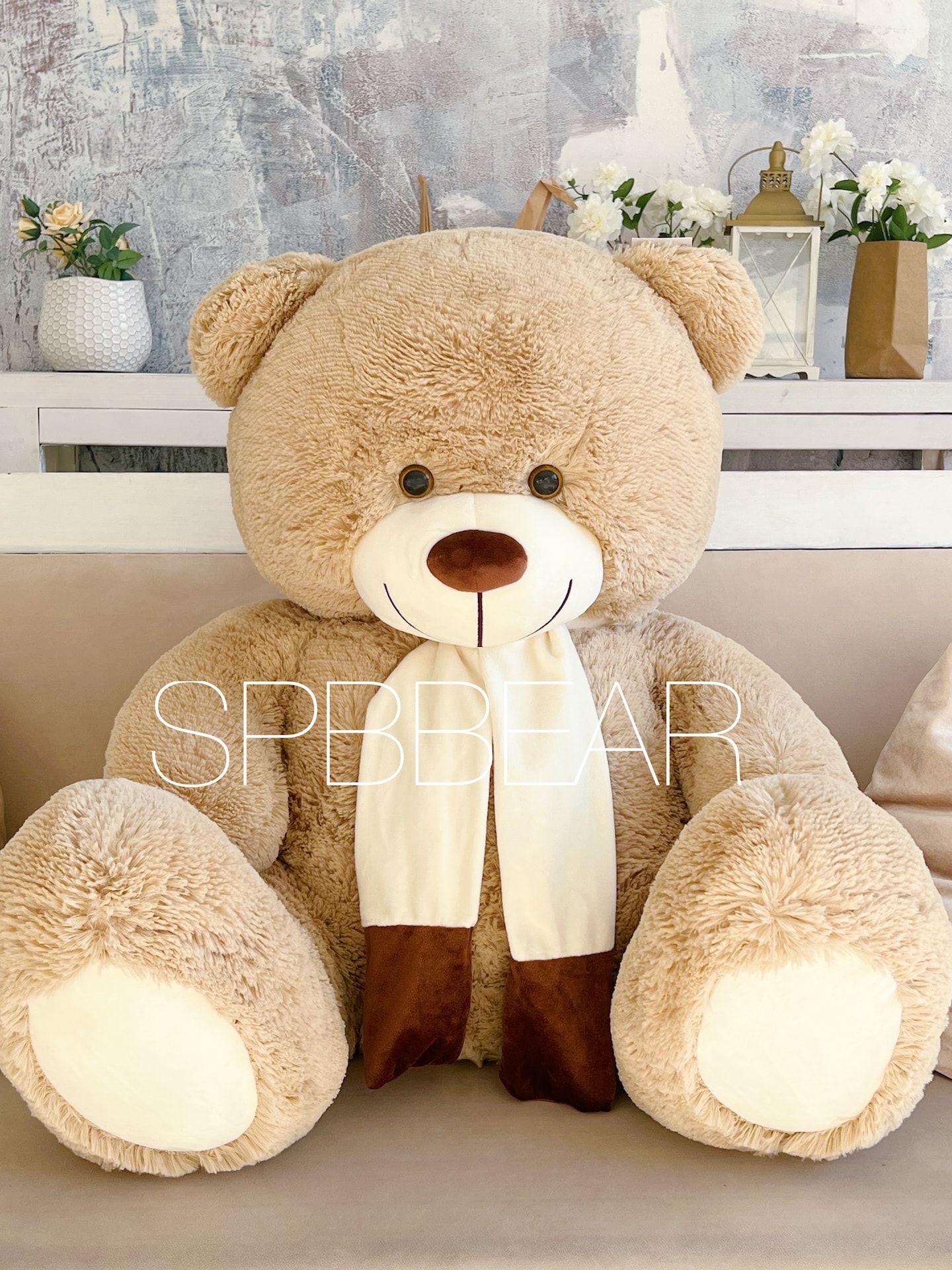 Большой плюшевый медведь 140 см кремовый Барни