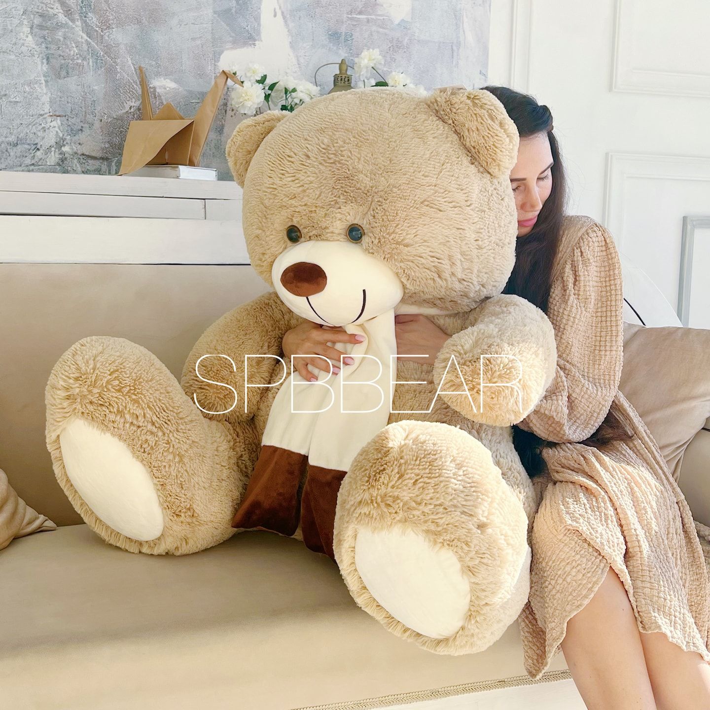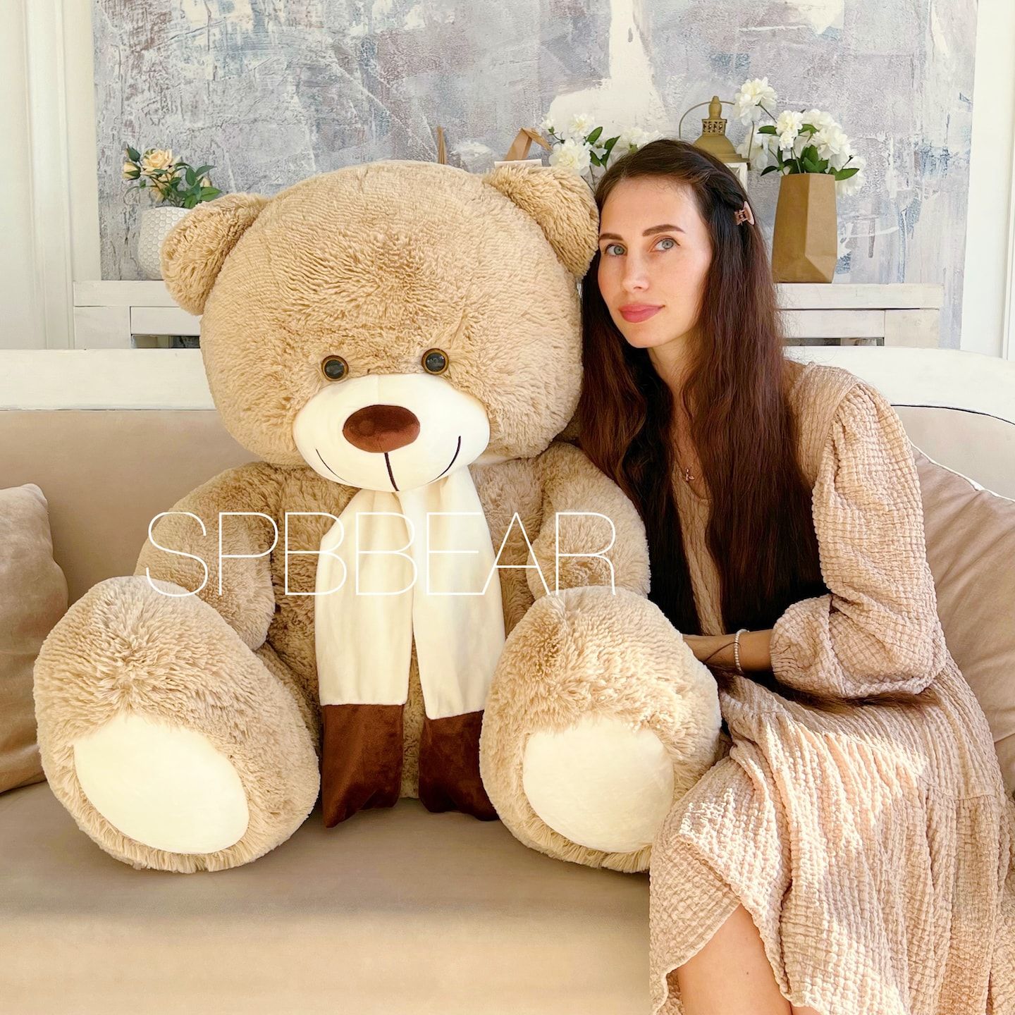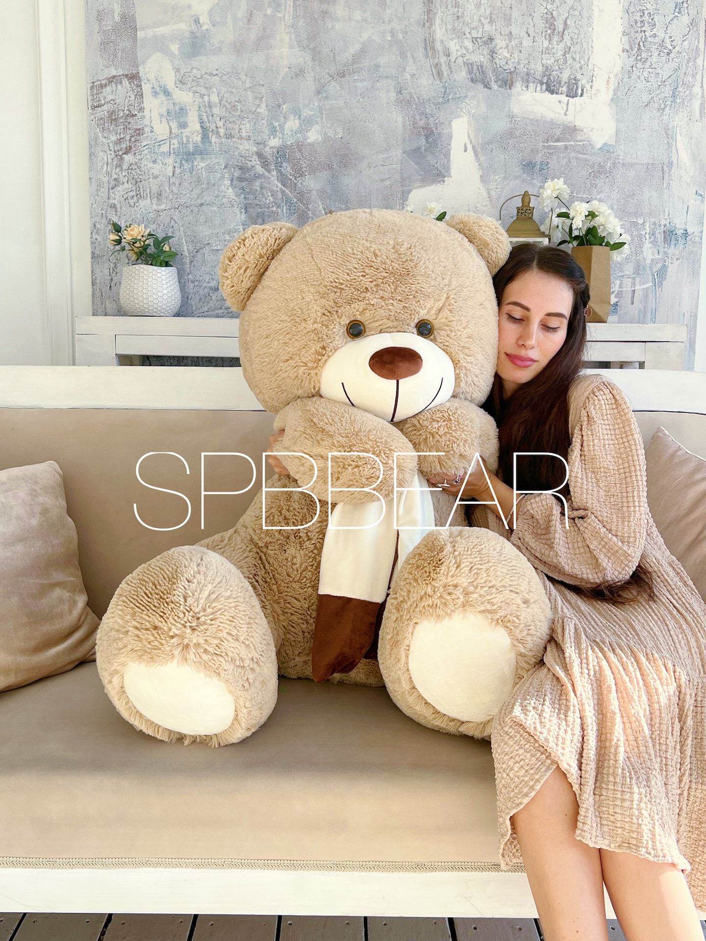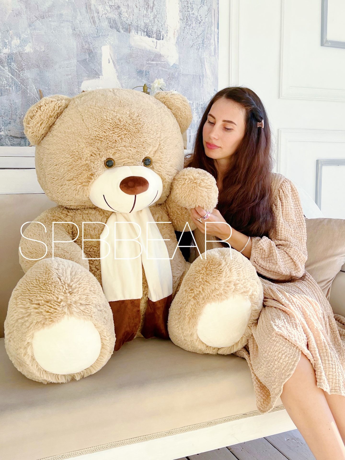 Большой плюшевый медведь 140 см кремовый Барни