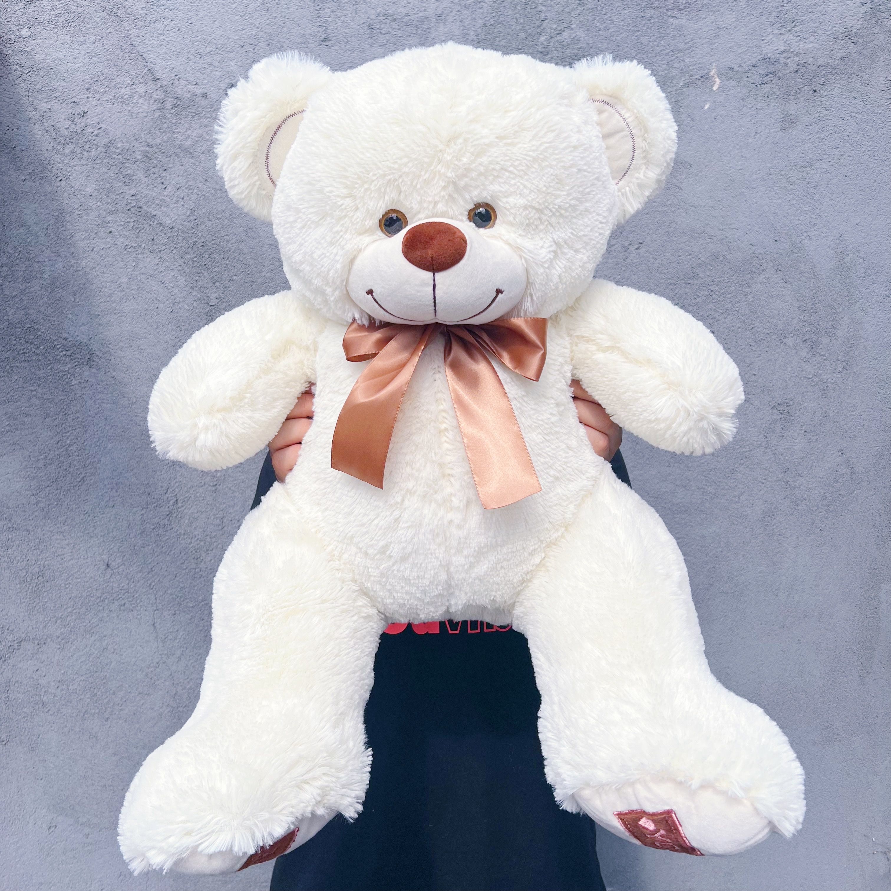 Бежевый плюшевый мишка любит праздники и ждет приглашения на один из них. Элегантный бант удивительно идет ему! Торжественный стиль подходит для изысканных мероприятий, но и на неформальную вечеринку этот пушистый медвежонок с удовольствием отправится вместе с вами. Трогательная «татуировка» на лапке не оставляет сомнений, что он мечтает найти прекрасную хозяйку. Не важно, сколько ей лет и известны ли ее вкусы. Плюшевый бежевый "Микки" — сюрприз для особого случая, который лучше всего расскажет о ваших искренних чувствах кому он предназначен. Хотите найти лучший подарок в Санкт-Петербурге — выбирайте большого нарядного медвежонка!