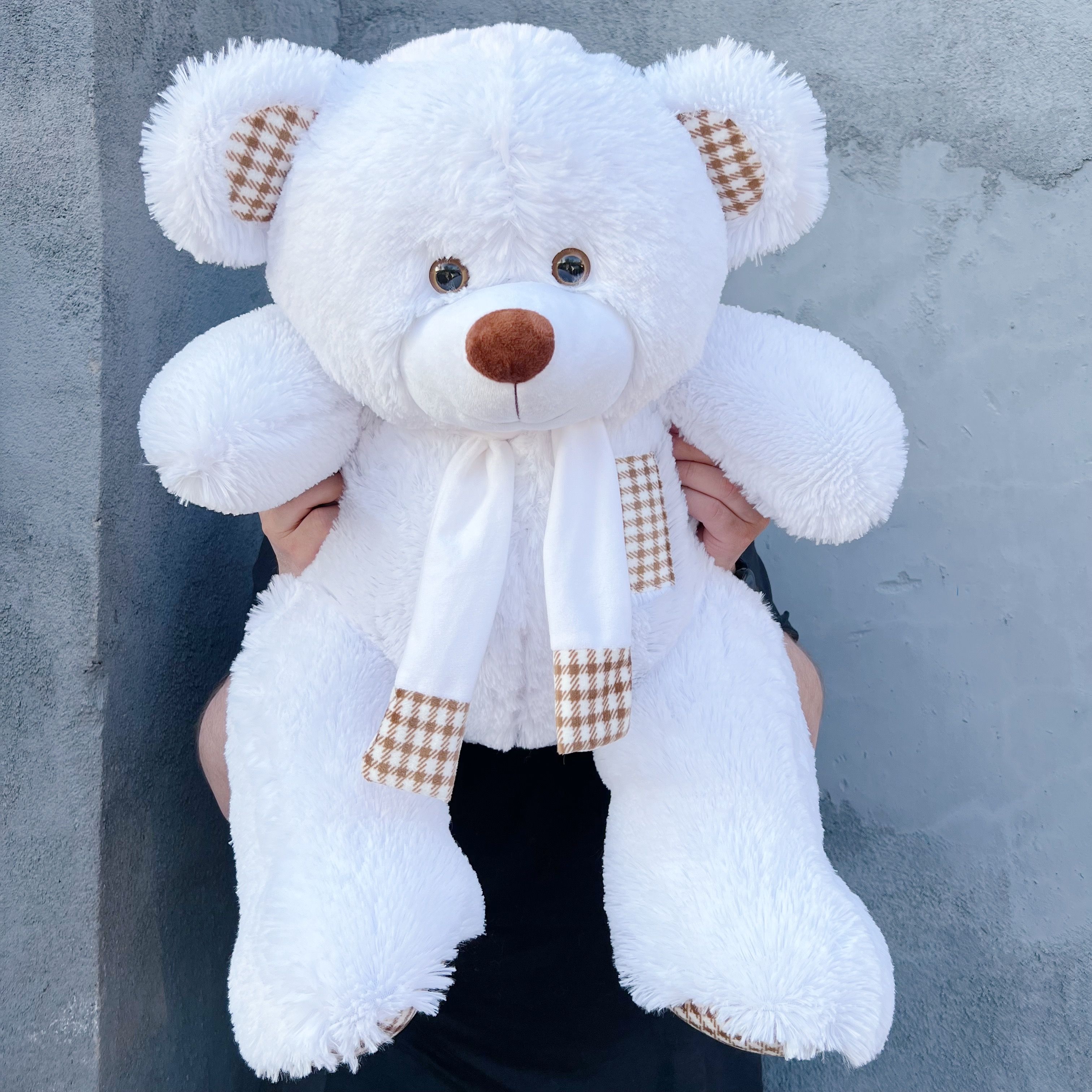 Презент подойдет как для маленькой девочки, так и для любимой девушки: добрые глаза, милая мордочка, округлые ушки растопят сердце любой. Большого плюшевого медведя зовут Тоффи. Бархатистая белая шубка говорит о том, что он родом с Севера. Сдержанный текстильный шарф на шее и вышивка на задних лапах украшают медвежонка. Размер равен 90 см. Для набивки используется 100% холлофайбер. Вес мишки составляет 1,3 кг. Страна изготовитель Белоруссия. Швы качественно прошиты и незаметны благодаря плотному меху. Чтобы быть уверенным, что подарок понравится, необходимо купить плюшевого мишку, который очарует будущую хозяйку.