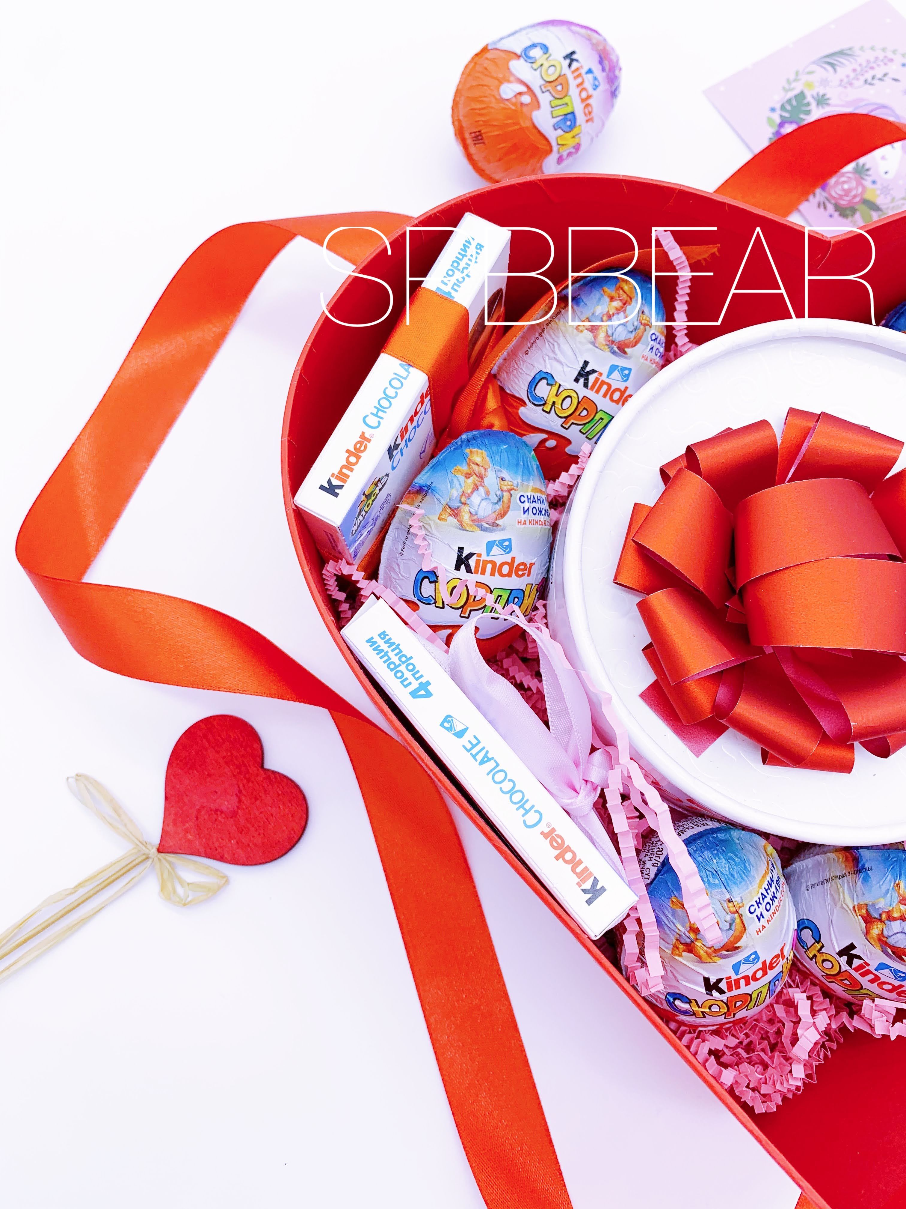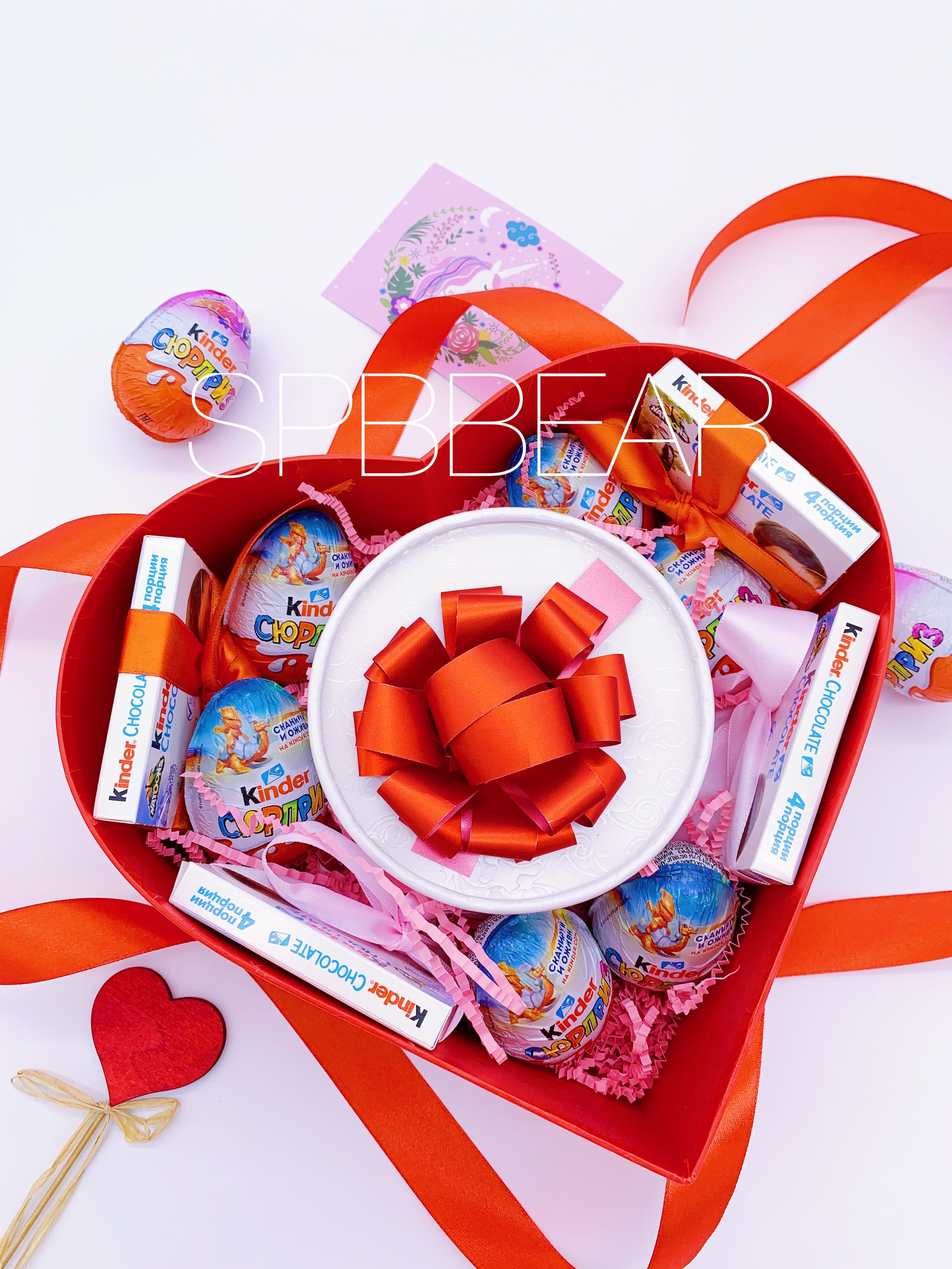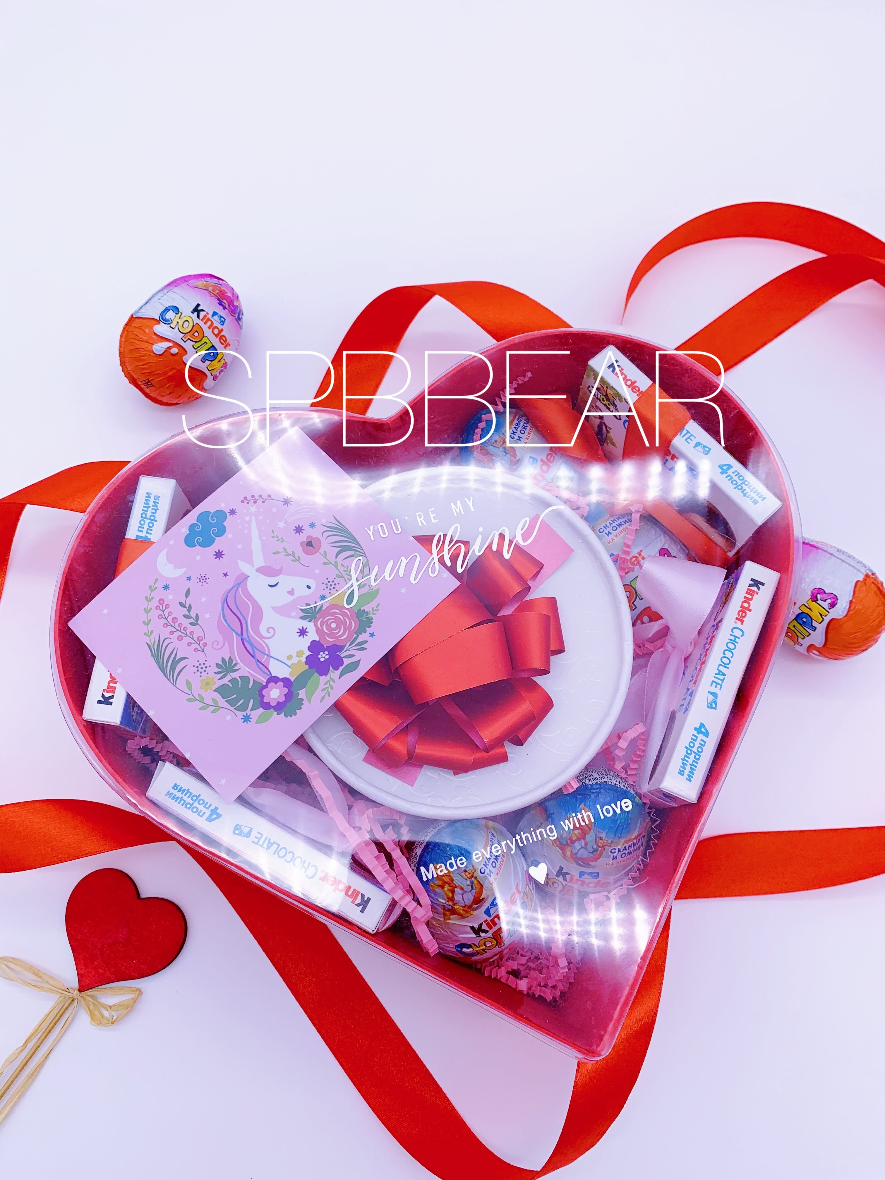 Данный товар собирается вручную и может незначительно отличаться от представленного на фотографиях. При этом количество, состав и общая концепция всегда неизменны. Могут отличаться цвет бантиков и коллекция (серия) "Киндер сюрпризов".