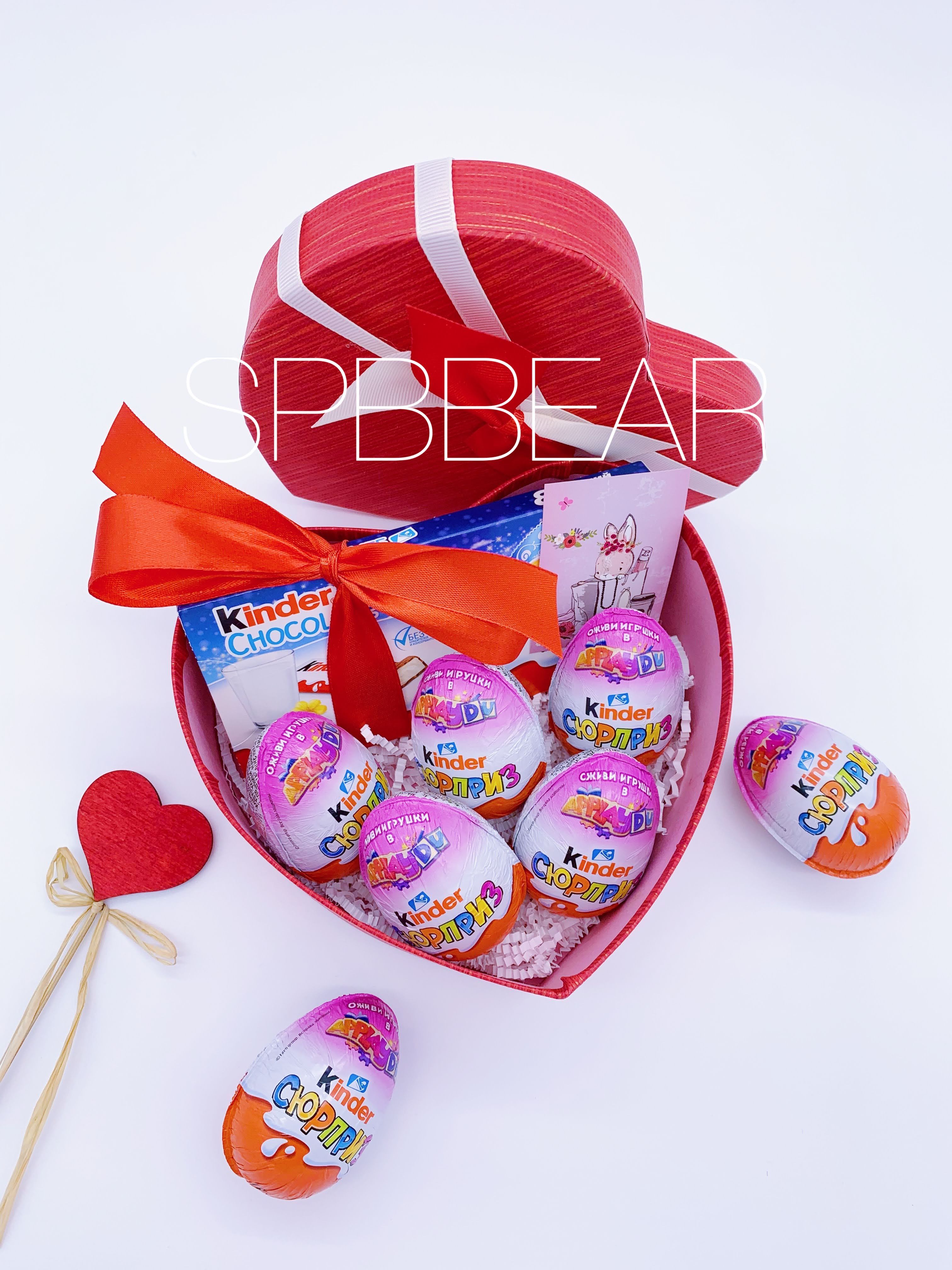 Хотите удивить любимых, подарить им воспоминания детства - тогда коробочка с киндерами станет отличным решением. Такой подарок подойдёт на любой праздник: 8 марта, Новый год, День Рождения. А если дополнить такой презент плюшевым мишкой 150 см - это создаст настоящий фурор и незабываемые впечатления. Главным сюрпризом корзины считаются, конечно же киндеры. Мы вкладываем только качественную и оригинальную продукцию. Основой для подарка является коробка приятного оттенка. Все это дополняется открыткой, в которой можно оставить послание для получателя. Украшается подарок лентами и декоративными элементами.
