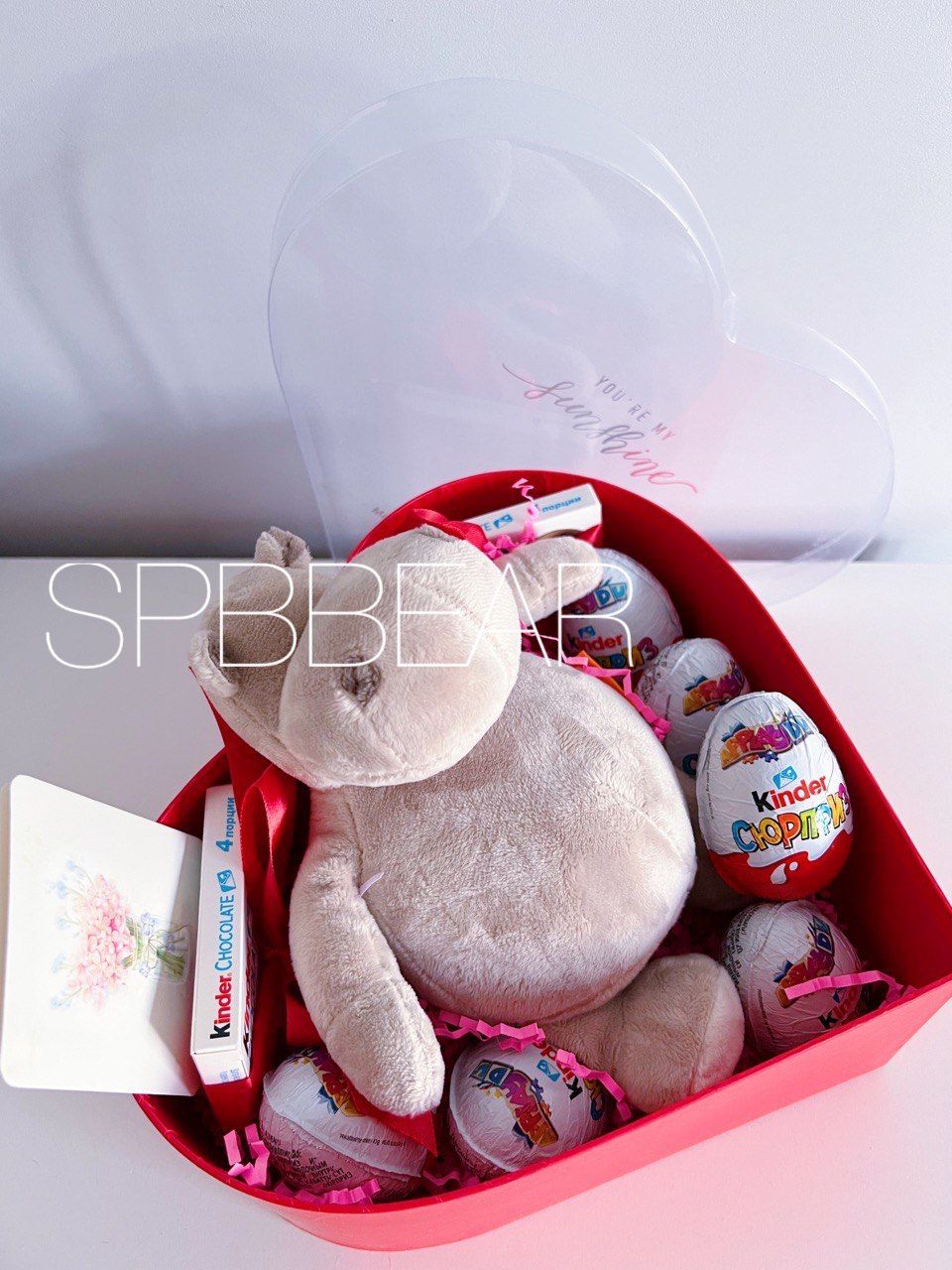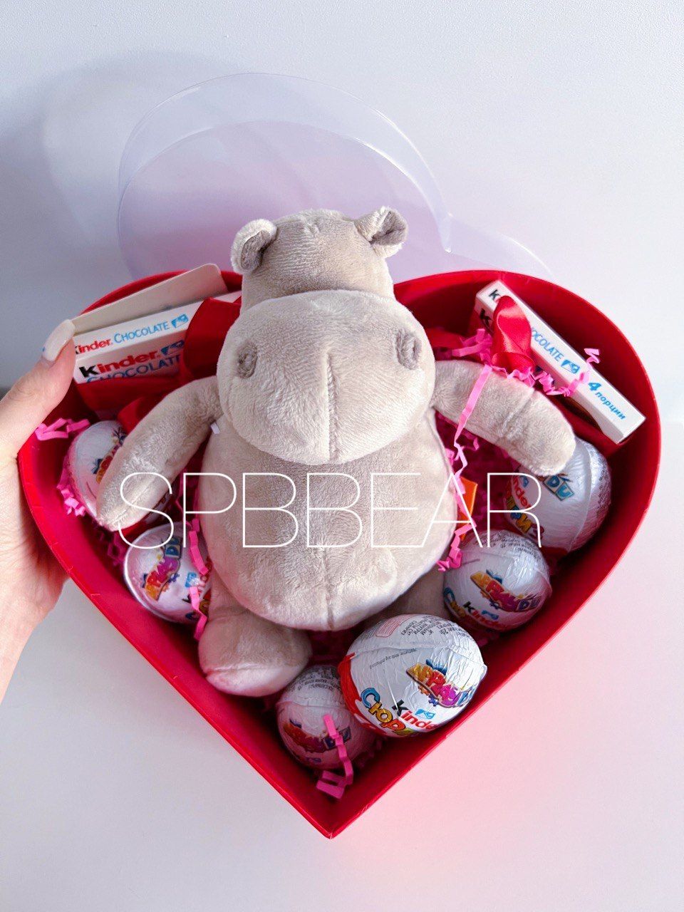 Такой очаровательный набор незаменим, когда хочется выразить самые теплые чувства тем, кто особенно дорог. Молочный шоколад отличного качества, милая плюшевая игрушка, трогательная открытка с радостью будут приняты маленьким получателем, или вашей любимой. Лакомства с сюрпризом — что может быть лучше? Целая коробка с киндерами не оставит равнодушным, это отличный шанс завоевать чье-то сердце навсегда. Если хотите подарить что-то особенно приятное, то много шоколада и трогательный бегемотик — безошибочный вариант. Проверьте сами!