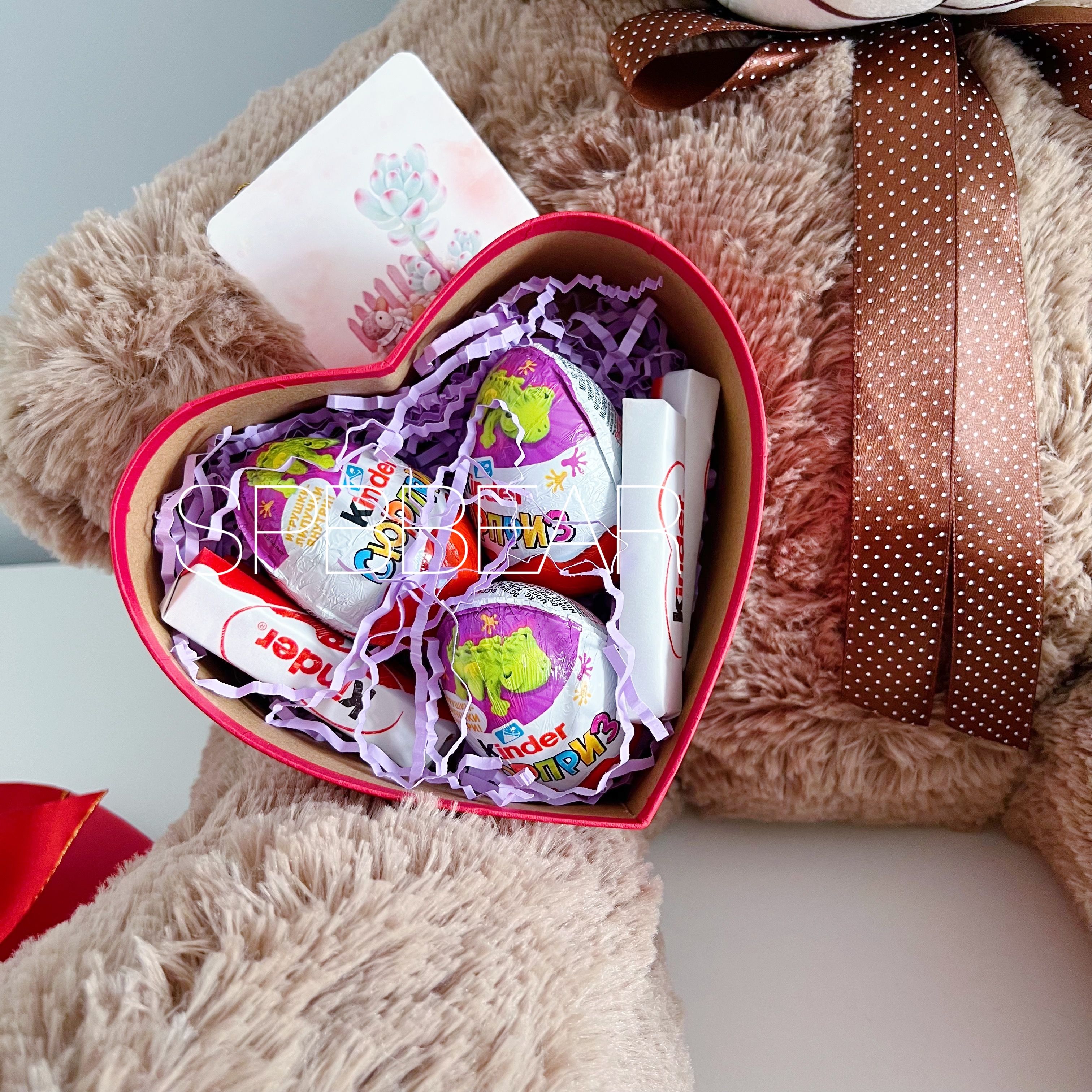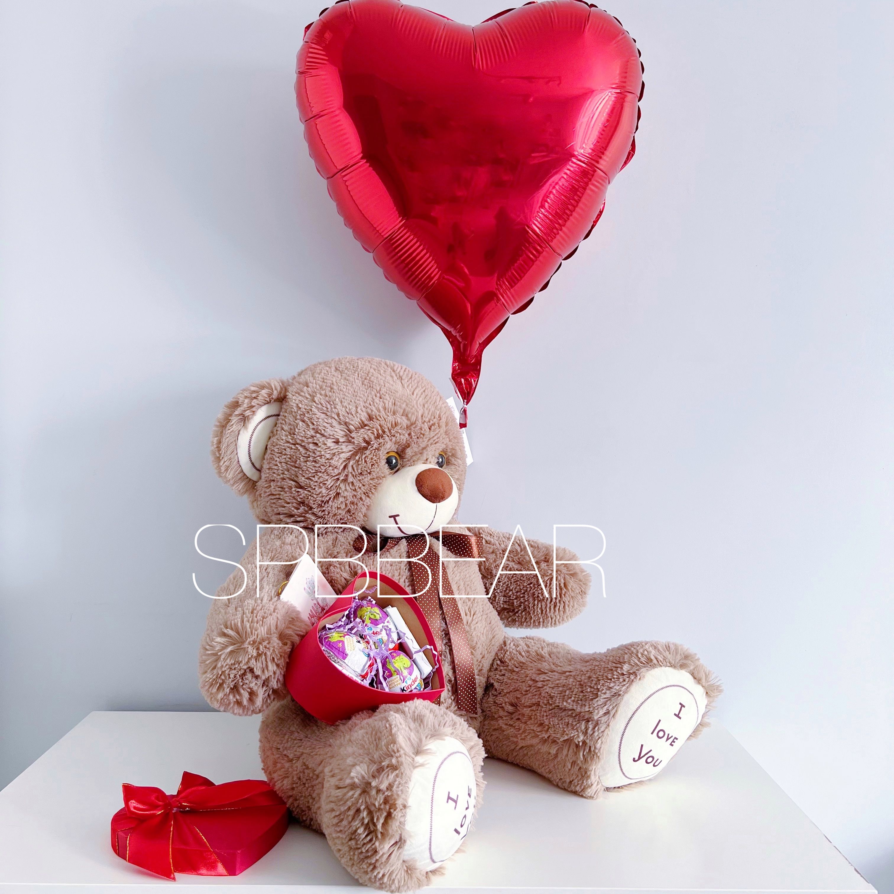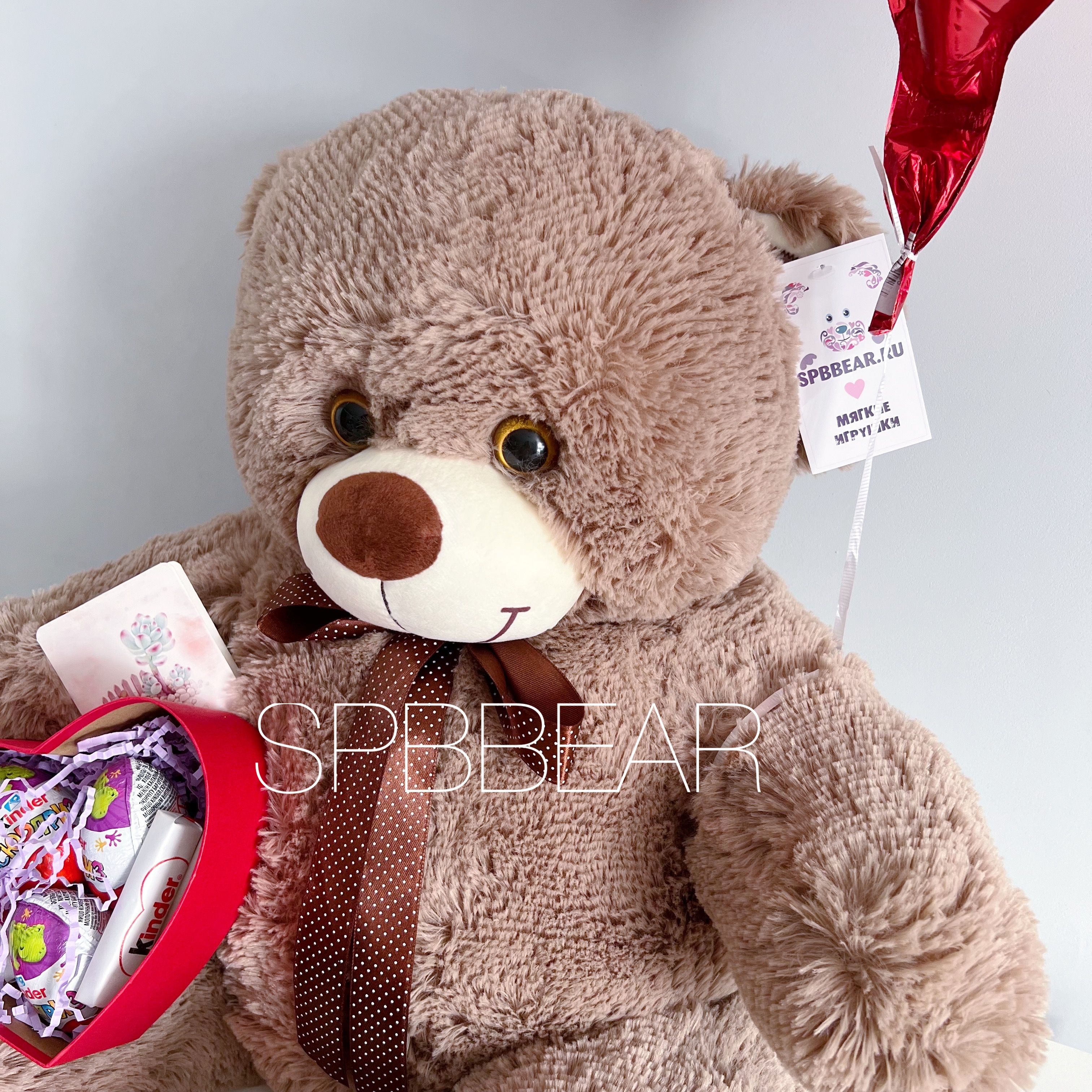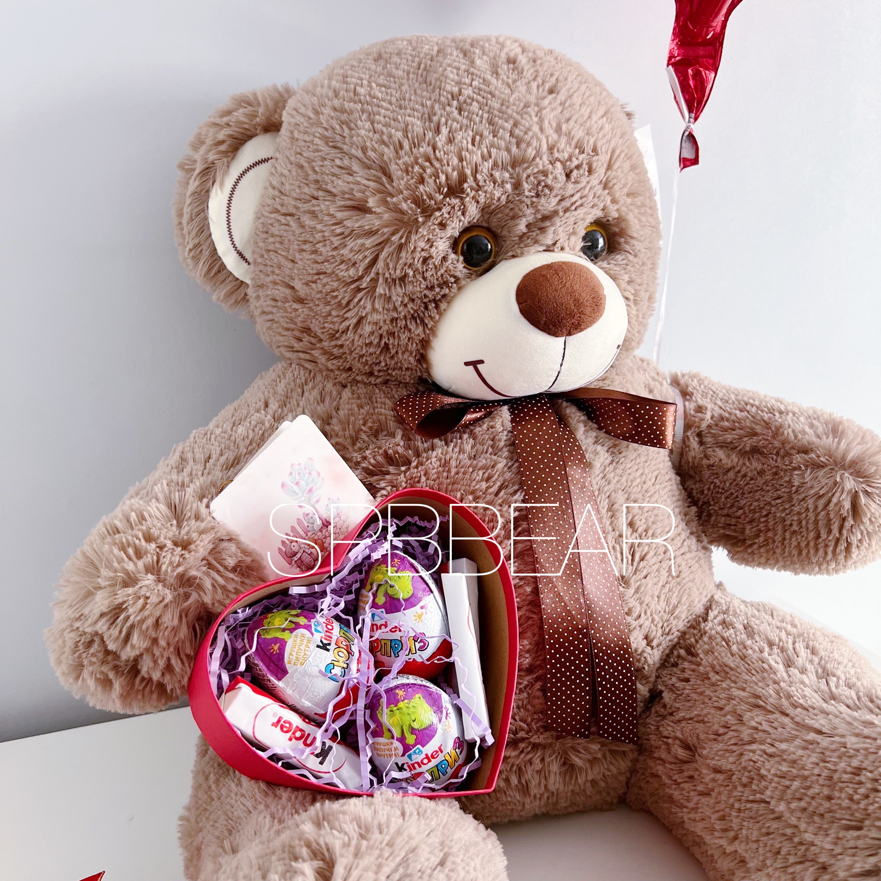 Подарочный набор это идеальный выбор для тех, кто хочет преподнести особенный подарок своим близким! Этот набор состоит из мягкого и уютного плюшевого мишки 85 сантиметров кофейного оттенка, красного шара сердце и киндер бокса. Такой подарок непременно вызовет самые теплые эмоции и надолго запомнится своей оригинальностью и нежностью. Подарите радость своим любимым и позвольте им окунуться в атмосферу волшебства с таким милым подарком-сюрпризами