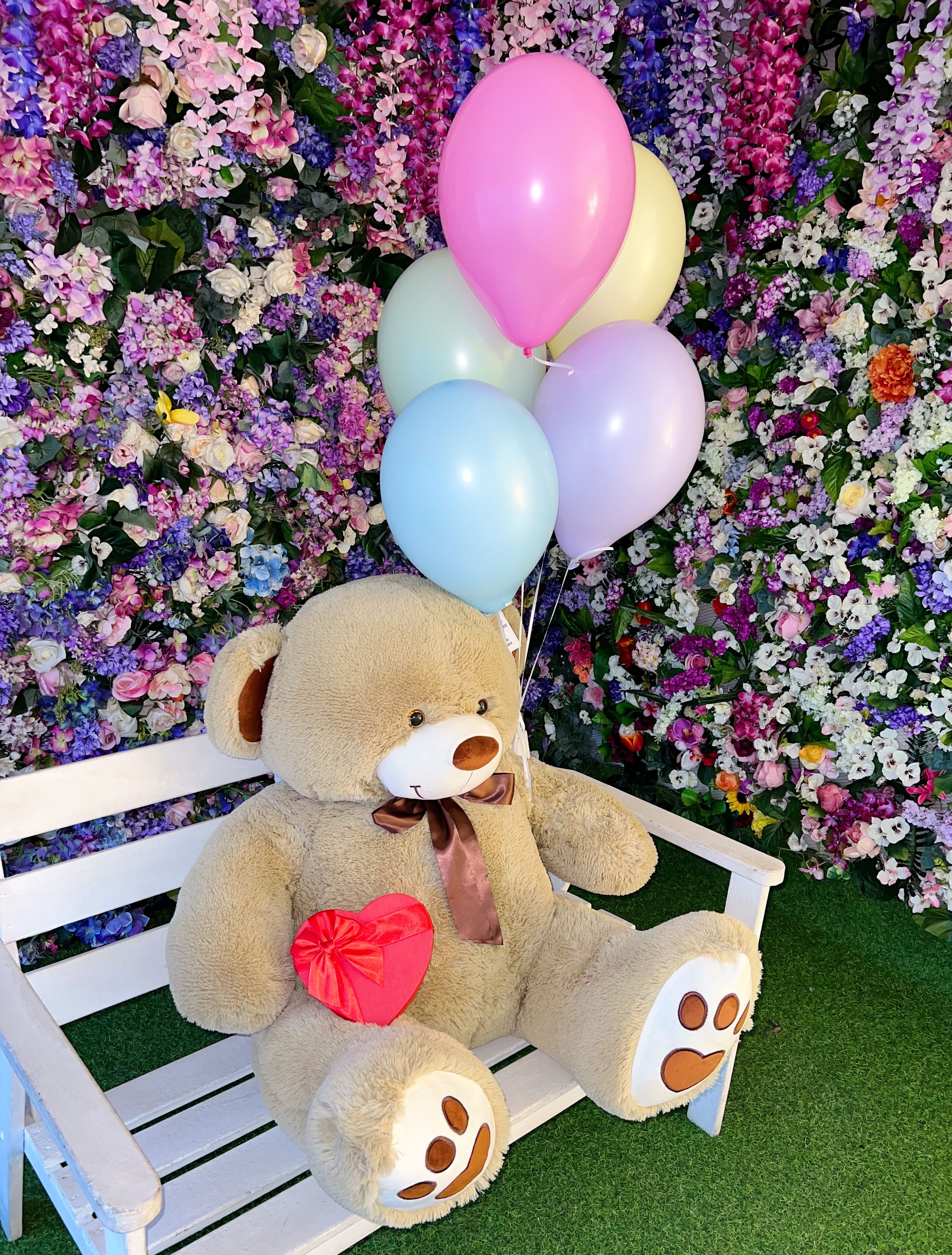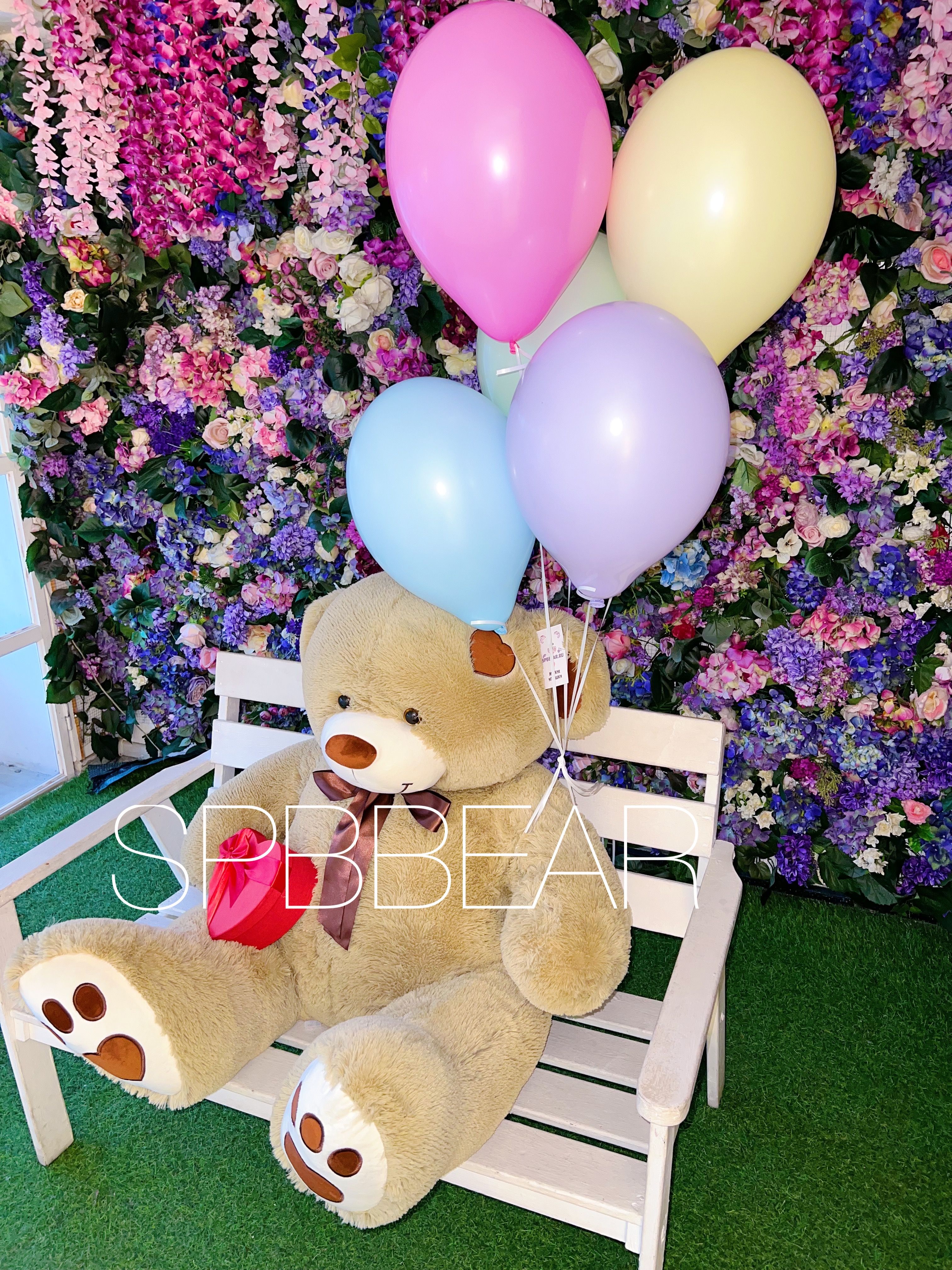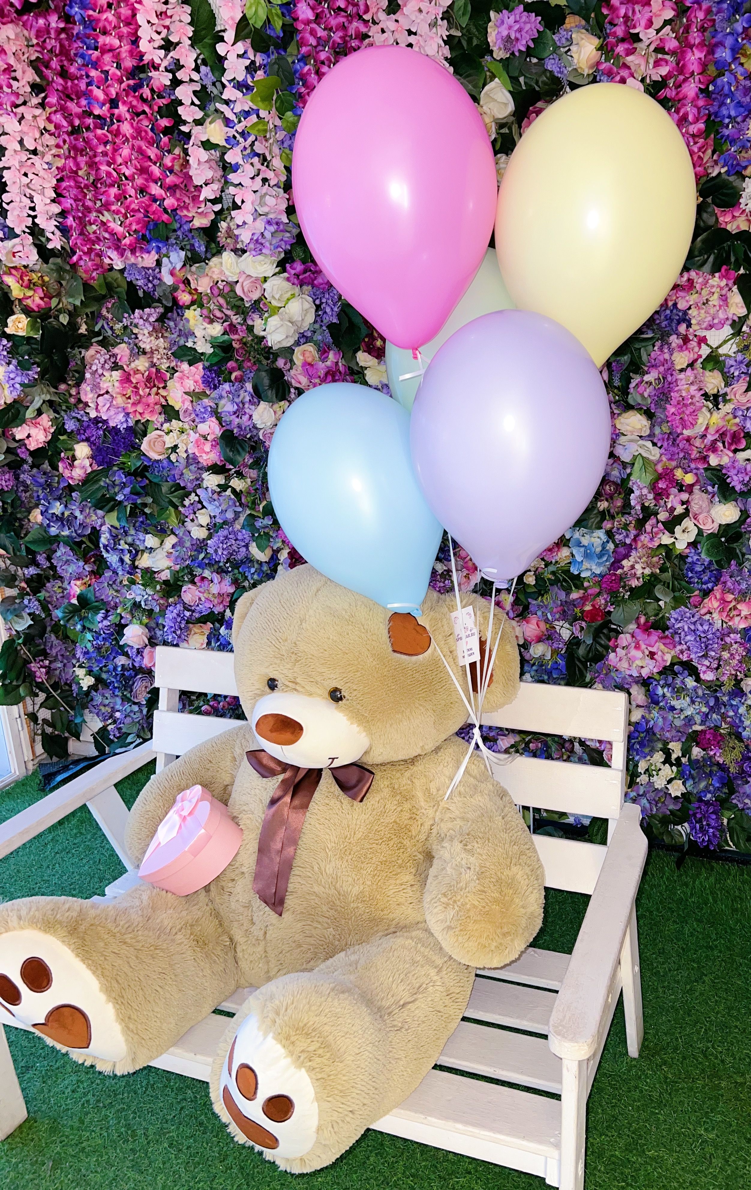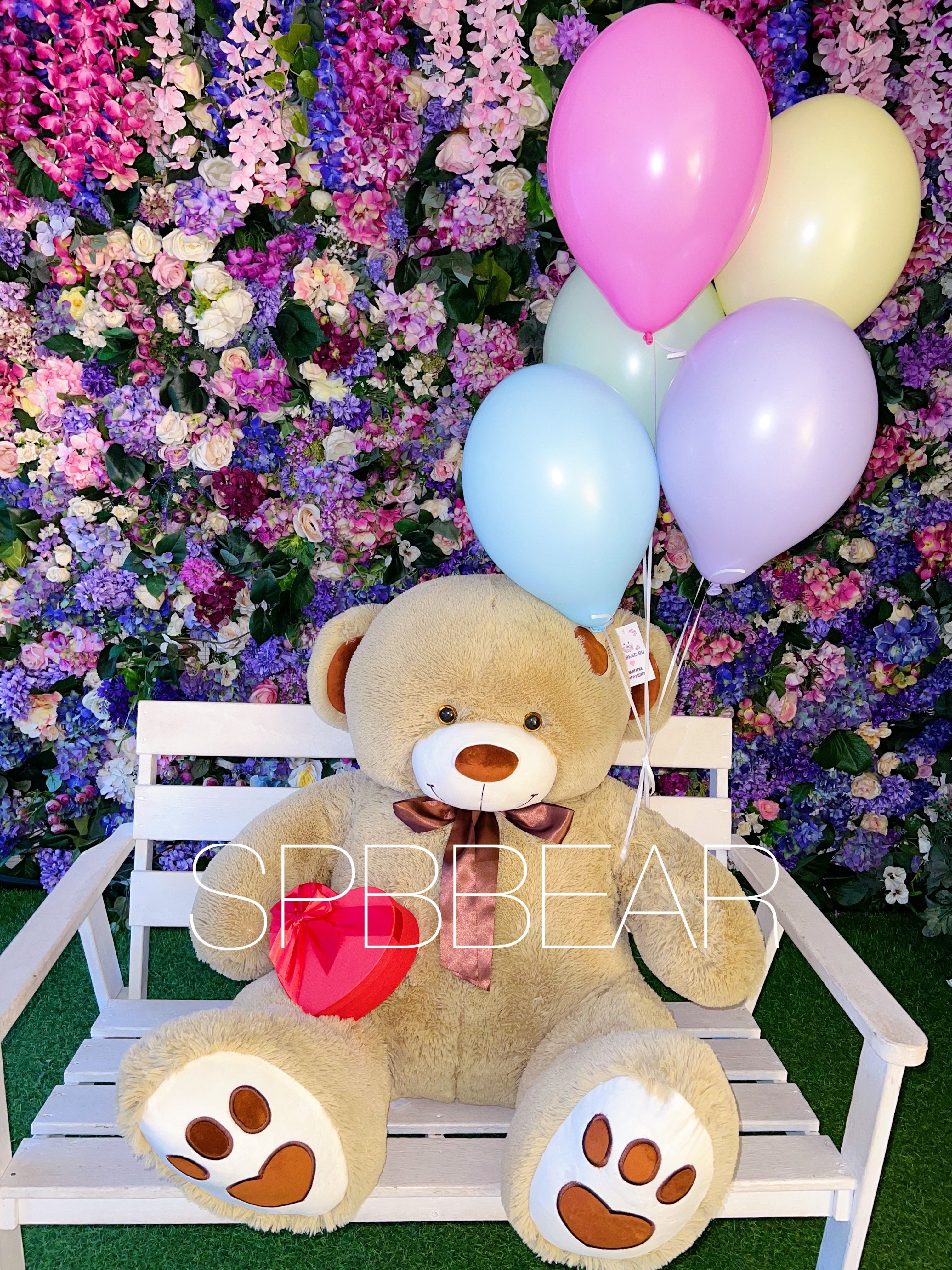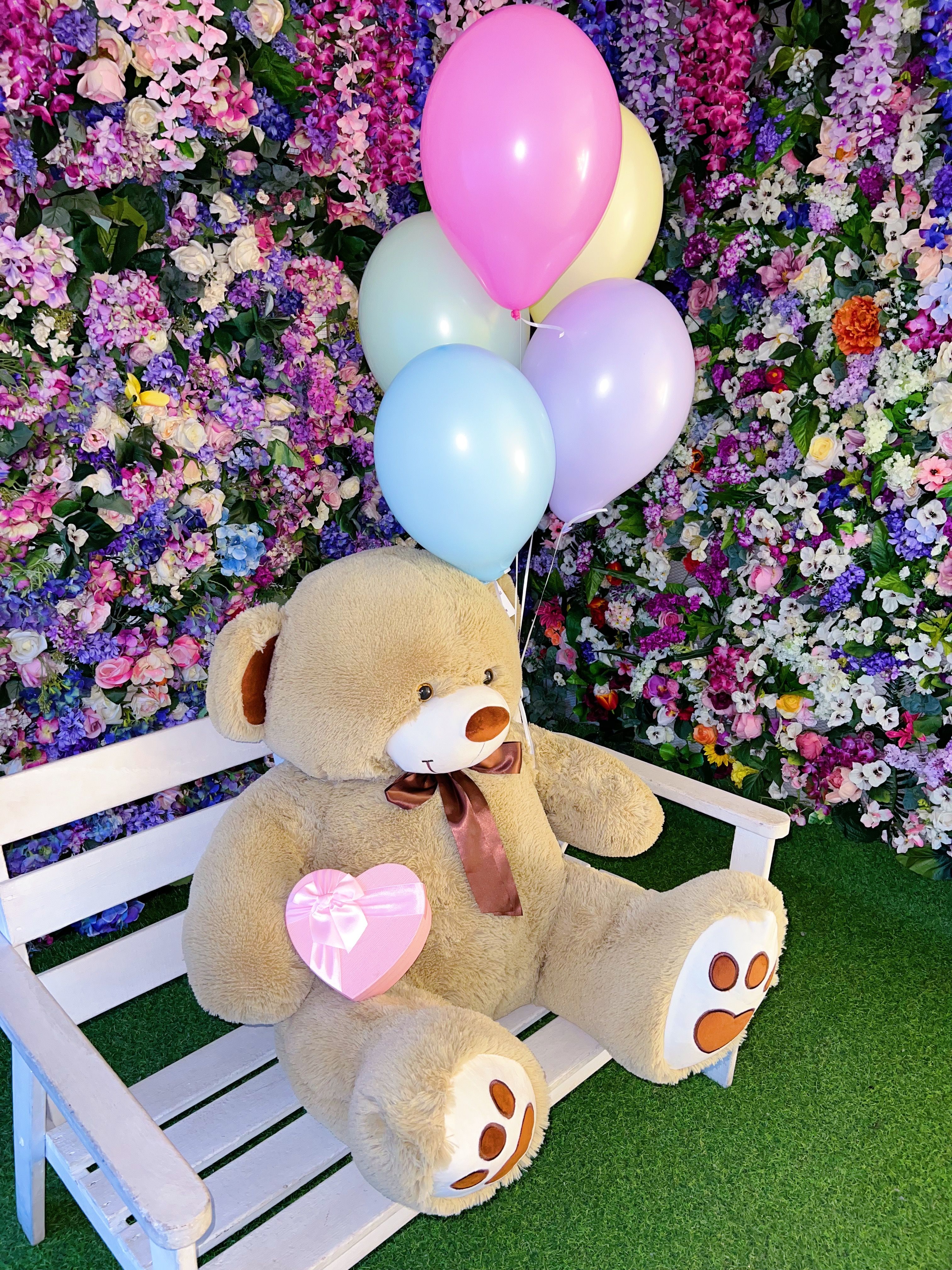 Великолепный плюшевый медведь размером 150 см станет главным героем любого мероприятия, вызывая улыбки и заряжая позитивом всех вокруг. Пять разноцветных воздушных шариков добавят красок и легкости, превращая каждый момент в яркое и запоминающееся событие.